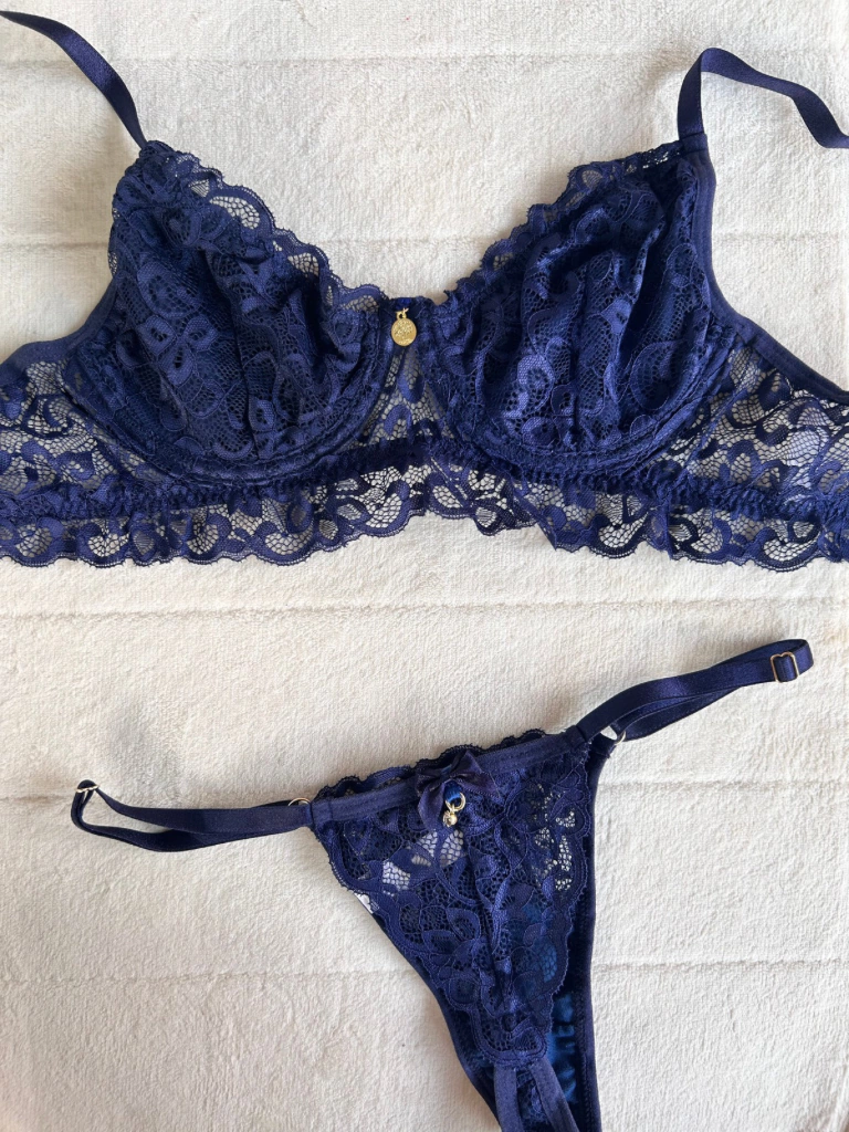 A peça perfeita para unir delicadeza e sofisticação. Confeccionando em renda fina e sem bojo, aro de sustentação garantindo suporte necessário e calcinha com forro 100% algodão. Diferencias? Reguladores banhados a ouro 24K. Conforto e estilo.